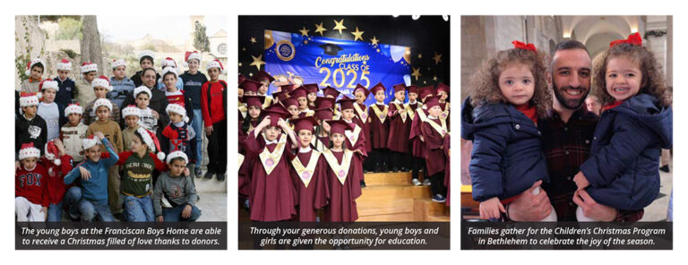 Can I count on you to help us continue this worthy mission this Christmas? Please respond generously. Every contribution, no matter the size, helps sustain a future for Christians in the Holy Land and affirms that they are not forgotten by the Body of Christ.