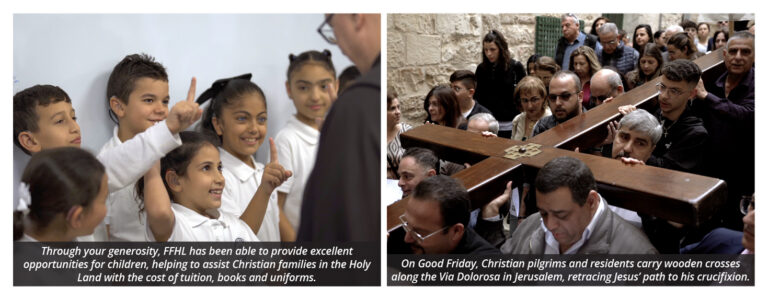 families can certainly help them see more clearly God’s care for them, can help families remain rooted in the land where Christ walked, can help educate children who long to learn close to home, can help the friars in their mission of being there with the people, and your generous response will bring you to a greater sensitivity that we are all part of a larger community that cares.